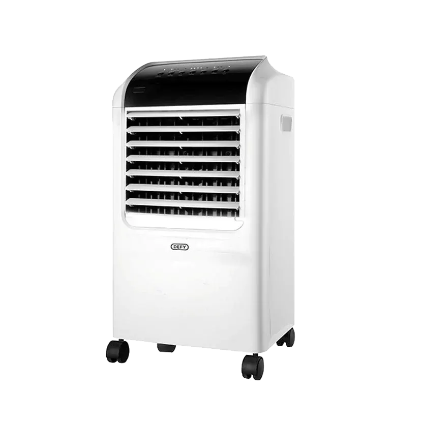 Beat the heat this summer with this cost-effective cooling unit. Using innovative technology, the Mac 6030W Defy Air Cooler substantially lowers the temperature of the interior. Unlike with traditional air-conditioners, the Defy Air Cooler blows a stream of air through ice and cold water, releasing infinitely cooler air into the room, without any sound. Because the product doesn’t use any refrigerant or artificial means to reduce temperatures, it is an incredibly eco-friendly and affordable alternative. In addition to the cooling benefits, the Mac 6030W Defy Air Cooler also enhances the quality of the air and humidifies the room, making it the health-conscious option as well. Stay cool and fresh during the warm months with this naturally efficient household appliance.