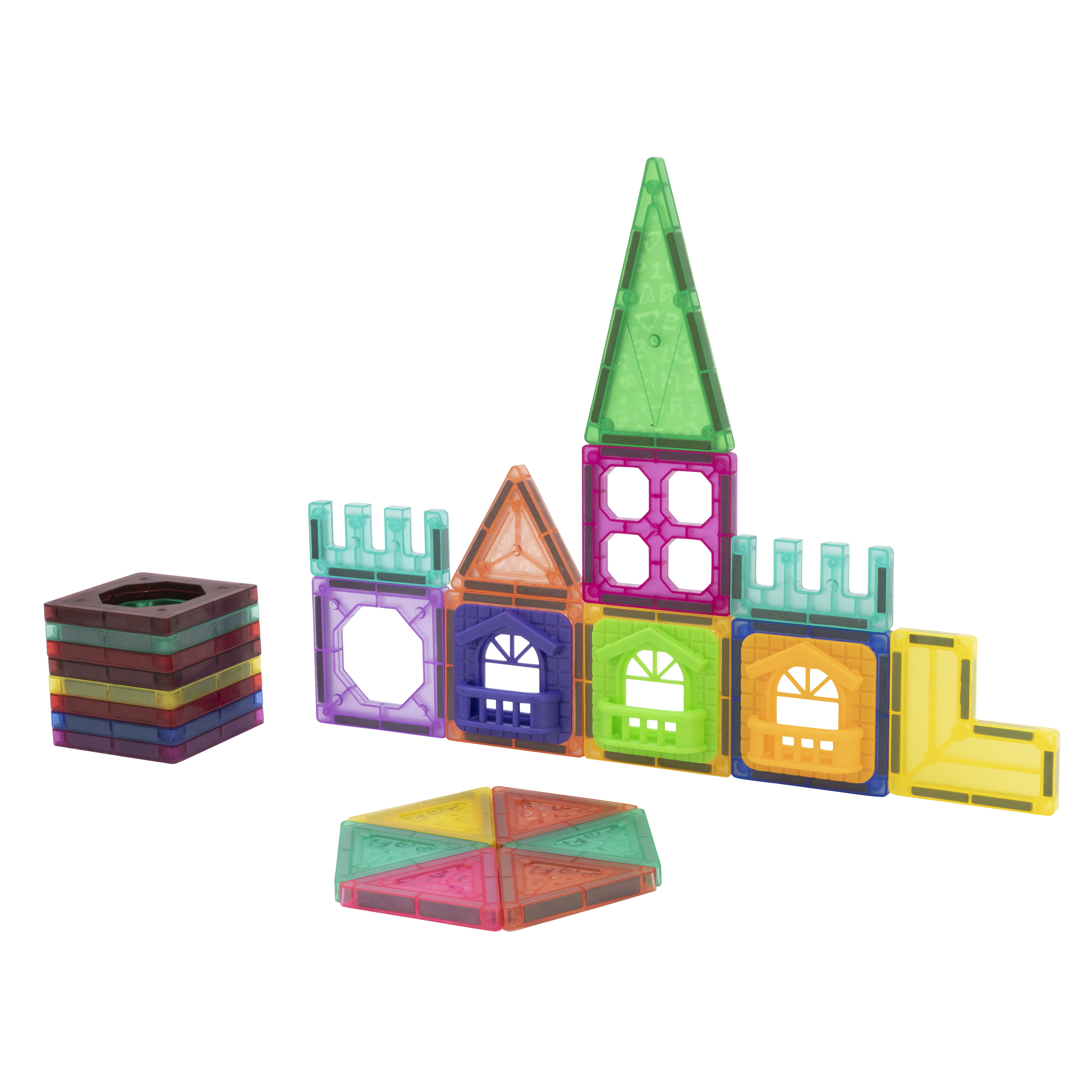 This mini magnetic tiles set consists of 30 pieces, including 14 windows.