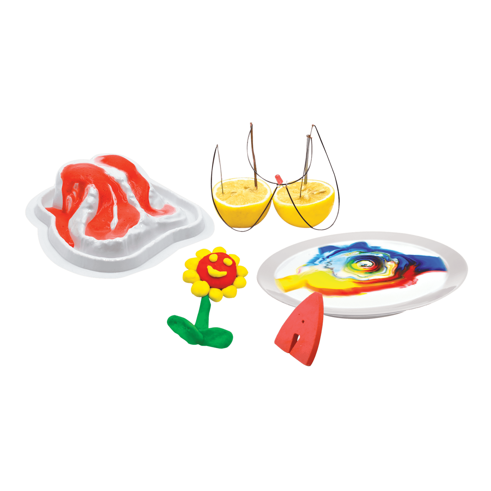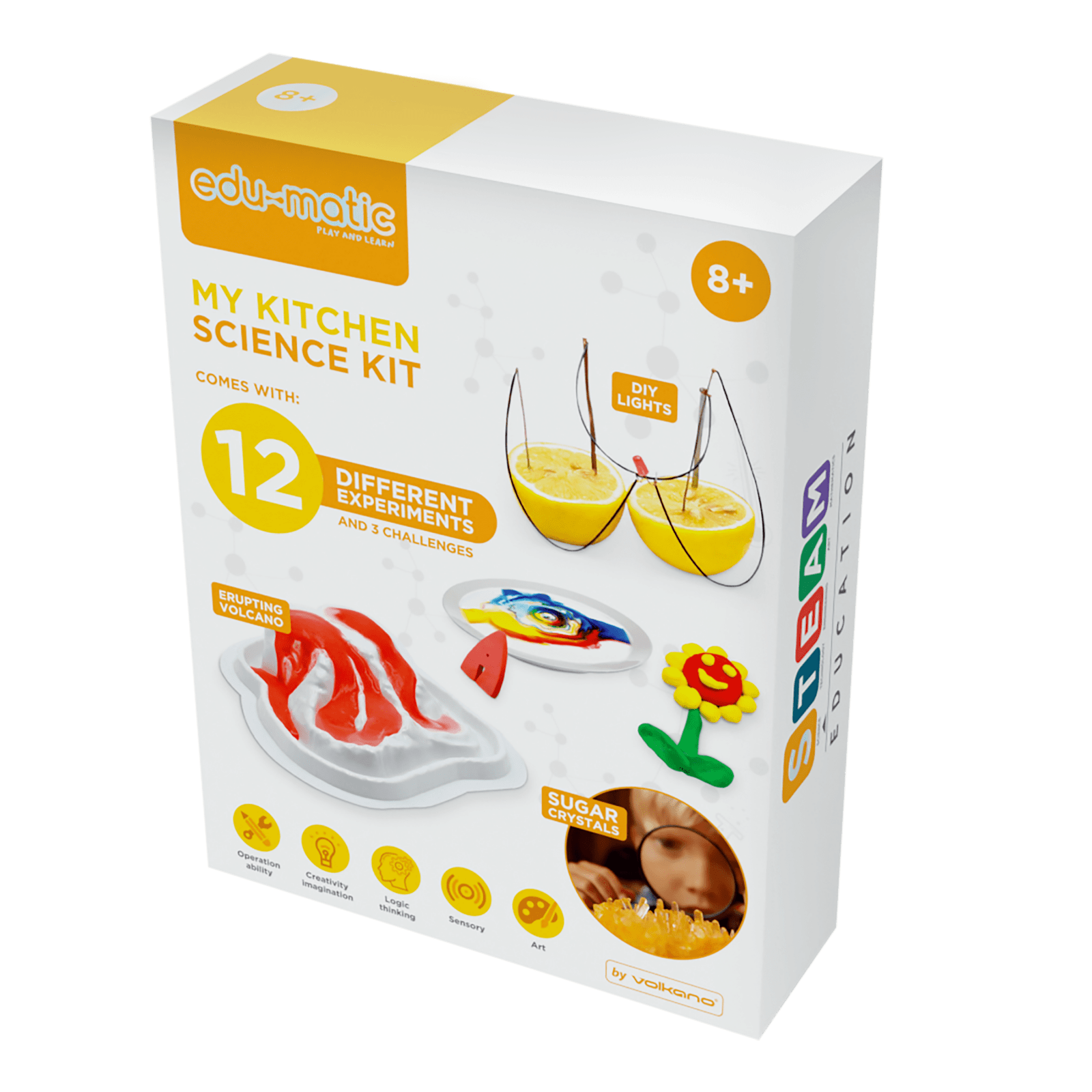 From creating a fruit battery to experimenting with oobleck, volcano-making, underwater fireworks, and sugar crystal growth, the possibilities are endless. All you need are some common kitchen ingredients and your child can conduct the experiments over and over again. Plus, as an added bonus, there are three additional challenges that build upon the first 12 experiments to keep your child engaged and learning for hours.