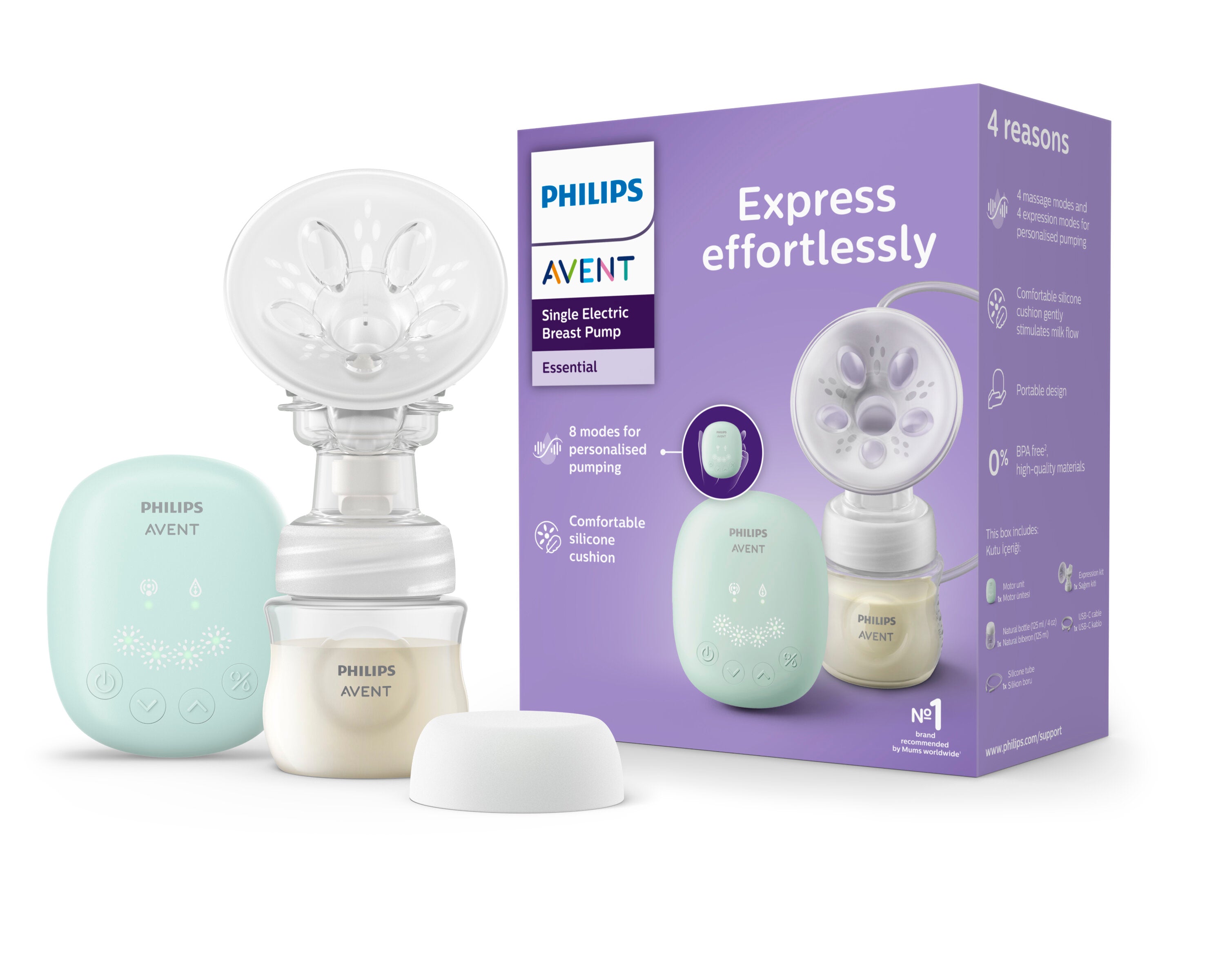 Philips Avent Single Electric Breast Pump Essential SCF323/11 -   Express effortlessly The Philips Avent electric breast pump keeps milk flow at an optimum and gently adapts to your size and shape. Quick, comfortable, and convenient for each new mother. Personalised experience, 4 + 4 setting levels Finely tune every session...