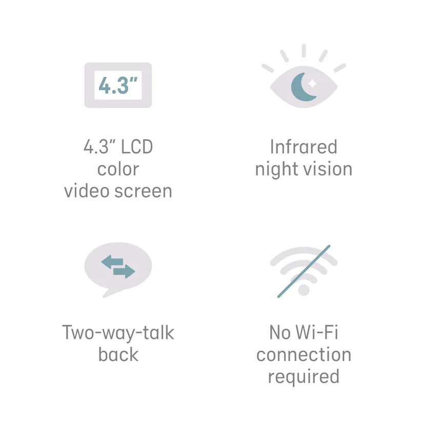 - Contact-free baby monitoring with no use of Wi-Fi for added security