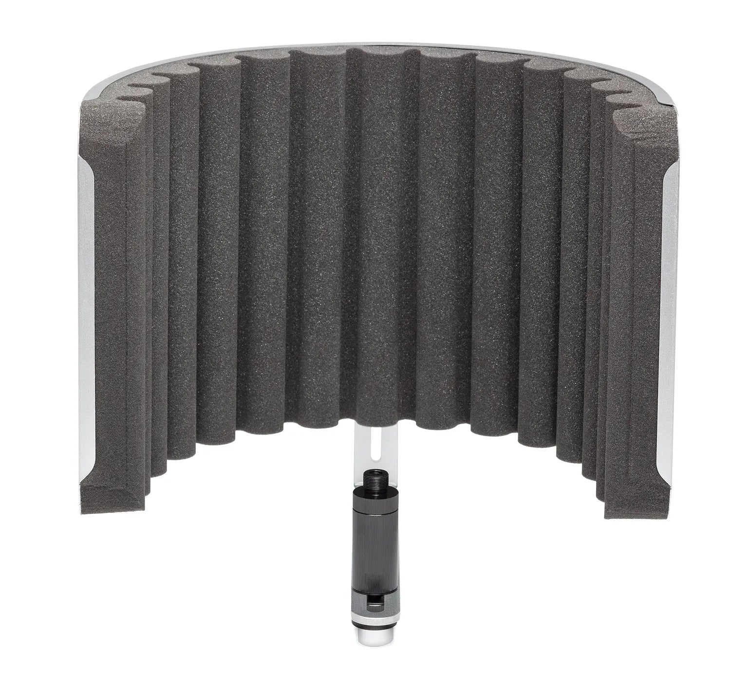 The RC10 Reflection Filter works with your microphone to transform any home or studio recording space into a professional vocal booth. Featuring a single-panel construction with an industry-standard acoustic foam interior and aluminum frame, the RC10 eliminates unwanted room noise and off-axis reflections, resulting in clear, crisp recordings. Primarily used for vocals, the RC10 is extremely versatile and can benefit recording situations involving guitars, drums, and other instruments. The lightweight RC10 is extremely portable, allowing you to capture great recordings anywhere, and is adjustable with its steel mounting mechanism offering up to 6.5" of vertical reach. The included mounting hardware easily attaches to standard mic clips (top thread) and stands (bottom thread), and also allows up to 8.75" of forward/backward movement for optimal placement.