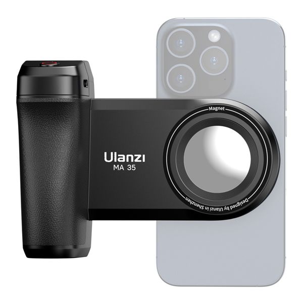 The MA35 Magnetic Smartphone Hand Grip with Bluetooth Camera Shutter from Ulanzi effortlessly turns your phone into a professional-level camera that is always with you. With both secure magnetic and phone clamp connections, it is compatible with both iOS and Android smartphones. The seamless magnetic connection enhances your experience and provides a versatile platform for your MagSafe-compatible devices. The phone clamp fits devices that are 5 to 9.5cm in width. A magnetic ring sticker is included in the box.