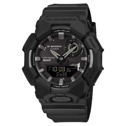 Introducing the solar-power-only watch capable of tracking and digitally displaying steps. The analog-digital combination GA-B010 features a large case with large, easy to read display. Deliciously detailed finishes — with a bezel ring treated to a vapor deposition finish, a sun-ray finish for the dial, and a metallic finish applied to the inset dial — add extra value to the toughness-oriented design. T