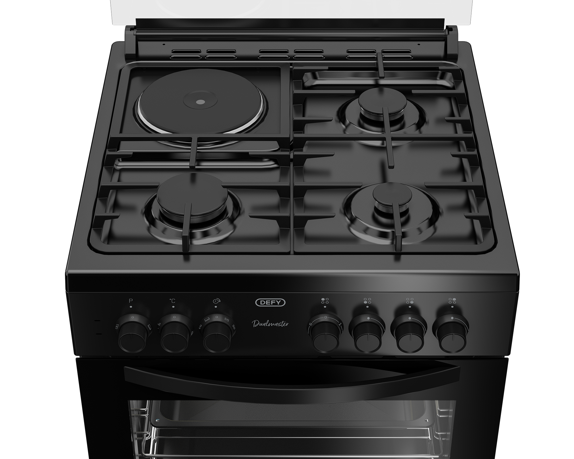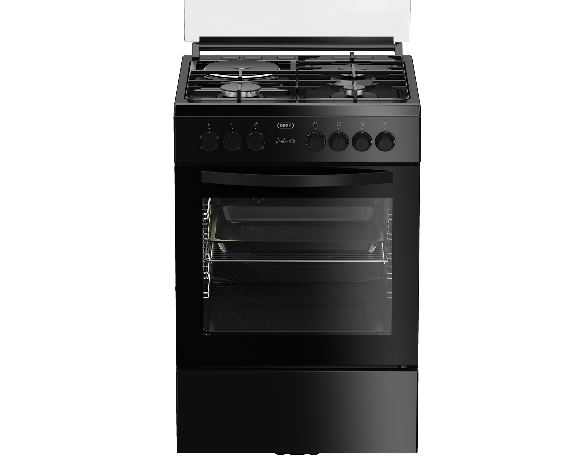 DGS679: Defy 60cm Gas Electric Freestanding Stove - Key Features Main Cavity - Oven Type Conventional Cooking Display / Timer Mechanical Ringer Timer - without Cut-off Energy Efficiency Class A Main Cavity - Steam Cleaning Simple steam cleaning Main Cavity - Door Opening Type Drop down Color of Product Black...