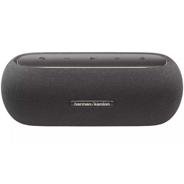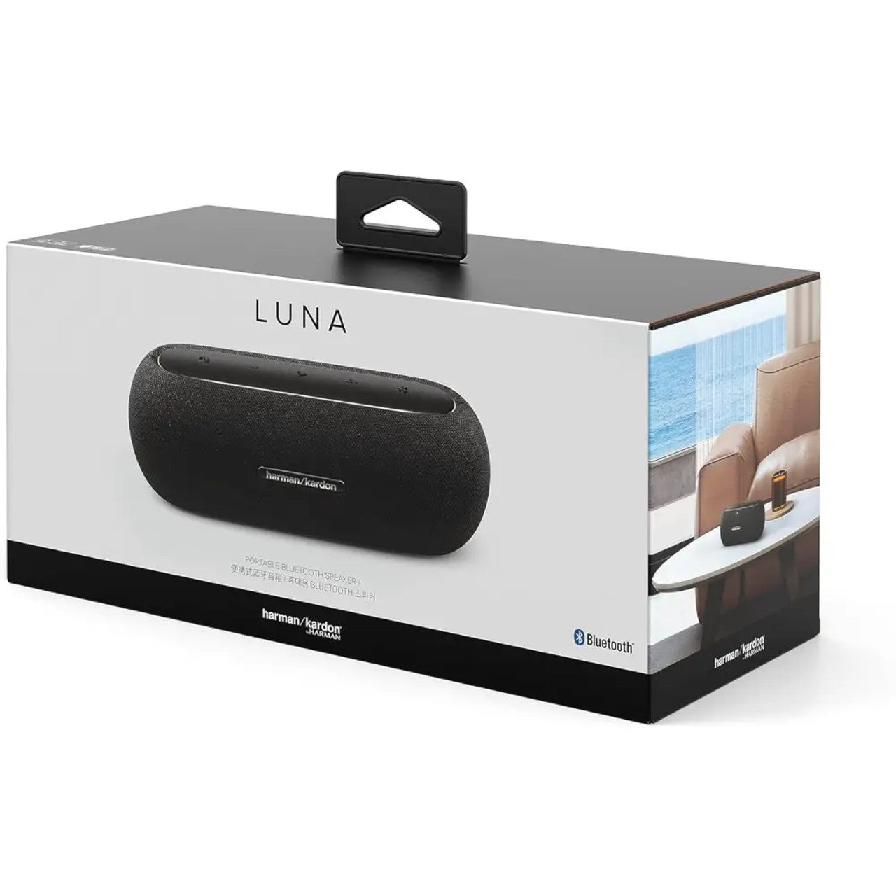 The Harman Kardon Luna's sleek, minimalist silhouette enhances any setting. The elegant ergonomic design, fabric-encased build, and anodized aluminum top panel look and feel great anywhere.