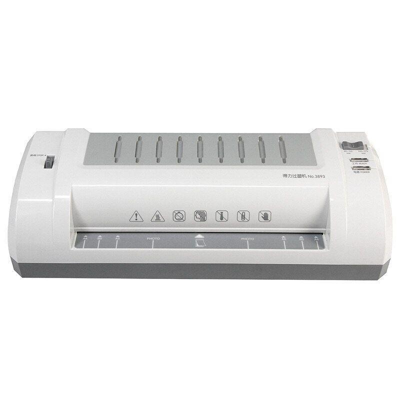 Suitable for laminating photos, name cards, pictures, certification paper and file paper. Water proof, damp-proof, fold-proof, hard to fade and long time save after laminated. Format: A4 Lamination speed: 300mm/s. Lamination range: 80-175 microns Temperature range: 85 - 145°C Warm-up time: 5 min. Power: 200 W Voltage: 220-240 V Noise...