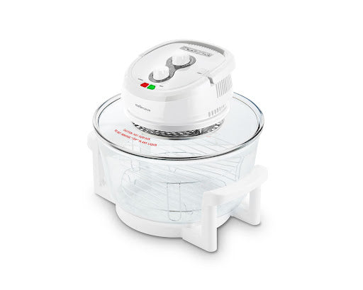 Mellerware Turbo Cook Air Fryer has a powerful heating element with an incoporated fan inside the glass lid which combined with its large 12L glass body, allows you to cook faster and more evenly than most convectional ovens and deep fryers.