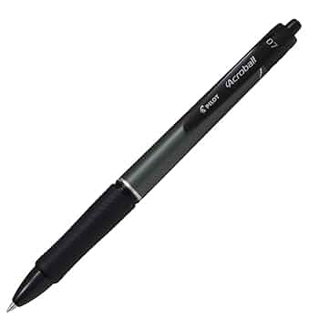 Enjoy a delightfully smooth and vibrant writing experience with the Pilot Acroball. Its richly pigmented ink is specially formulated to be 80% less viscous than ordinary ballpoint ink. This allows the ball in the pen tip to rotate smoothly, providing an effortless, skip-free writing experience.