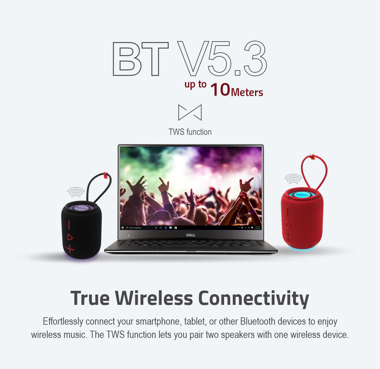 Effortless Connectivity: Easily connect your smartphone, tablet, or other Bluetooth-enabled devices for seamless wireless streaming. With True Wireless Stereo (TWS) pairing, you can connect two speakers to a single device, doubling the sound output for a surround sound experience perfect for gatherings and parties.