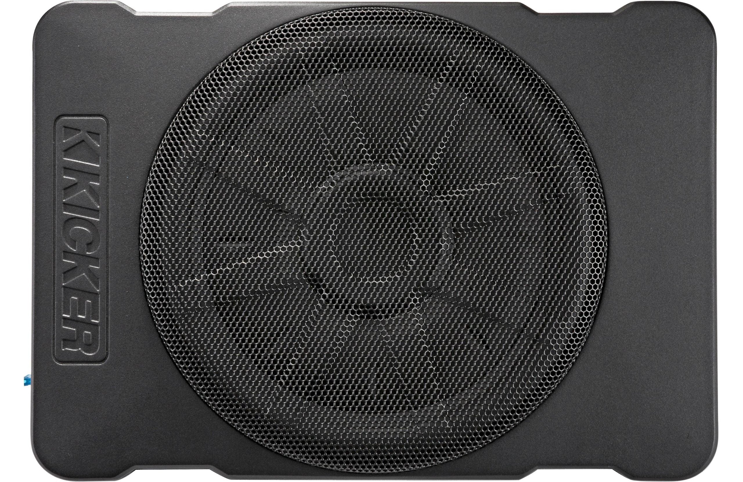 With a Kicker 10″ woofer, you can expect serious low end, and you can install the HS10 under most seats to bring the bass right up close. The tough all-aluminum chassis and stylish metal grille protect the speaker and deliver great sound. High- and low-level inputs give you plenty of options for hooking up your sub, and the HS10 can accept input signals from 0.25 to 40 volts so it works with almost any vehicle without adding a line output converter.