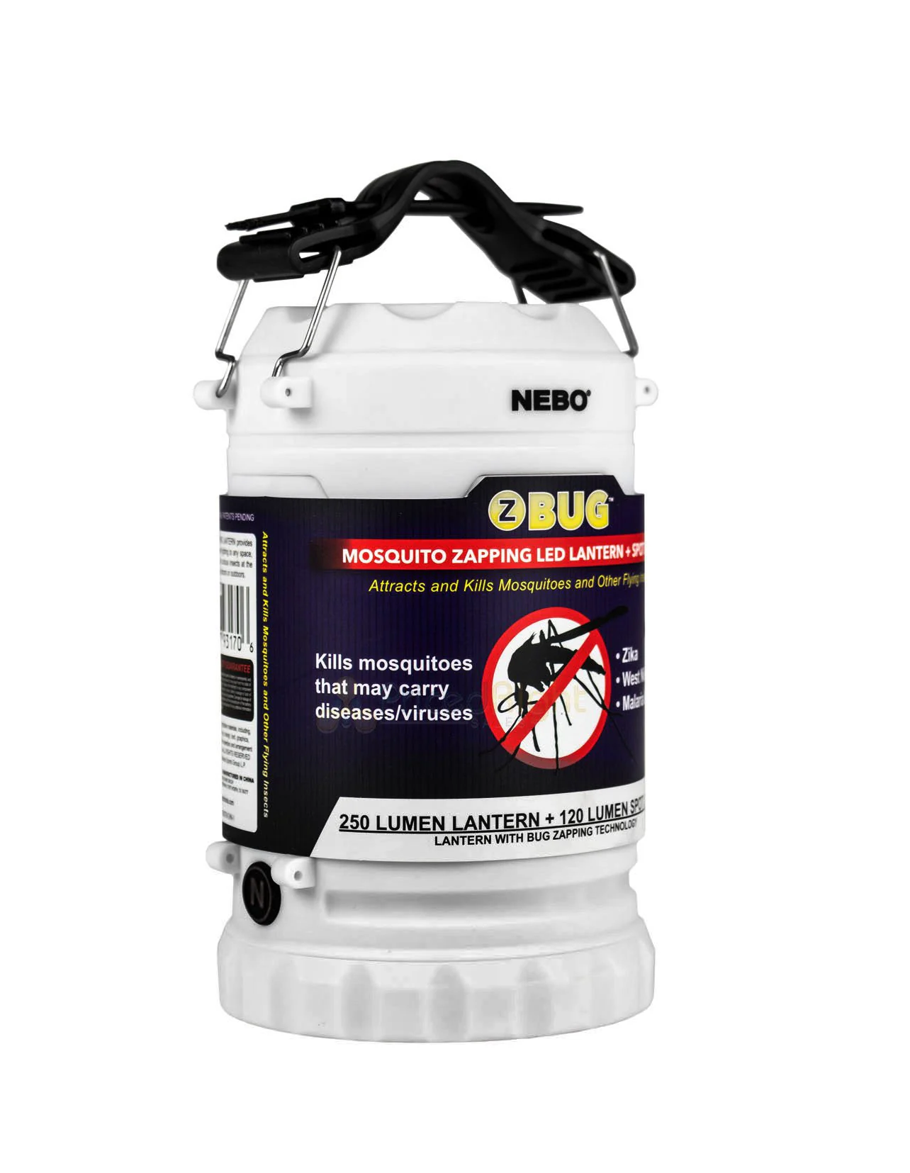 Protect your outdoor space while simultaneously providing the illumination you need with the Nebo Z-Bug Mosquito-Zapping LED Lantern and Spotlight. Using NUV LEDs that attract bugs and a 360° electric grid to fry them once they come into contact, this bug zapper keeps your outdoor adventures from being ruined by flying pests. Protective cover for the electric rails provides a measure of safety, while an included Z-Bug Bulb Sweeper makes it easy to clean up the bug mess at the end of your excursion. The spotlight produces 120 lumens, out 120 meters, for up to 18 hours. The fully dimmable NEBO Z-Bug Mosquito-Zapping LED Lantern and Spotlight includes a carry handle that easily adjusts for use in either spotlight or lantern modes.