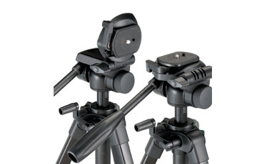 The EX-440 Aluminium Tripod with 3-Way Pan and Tilt Head from Velbon is a 1.18kg aluminium support, which has a load capacity of 2kg. The head itself has friction control, which adds or decreases drag on the 360° rotation and also for the back-and-forth tilt. At a normal stance, the tripod has a height of 126.7cm but extending the leg’s 4-sections and geared centre column, the tripod can reach a maximum height of 153cm. With the legs fully splayed out, the centre brace locks into place and provides extra stability to the legs. To transport the tripod, it folds down to 47cm, and the support includes the QB-46 quick release plate.