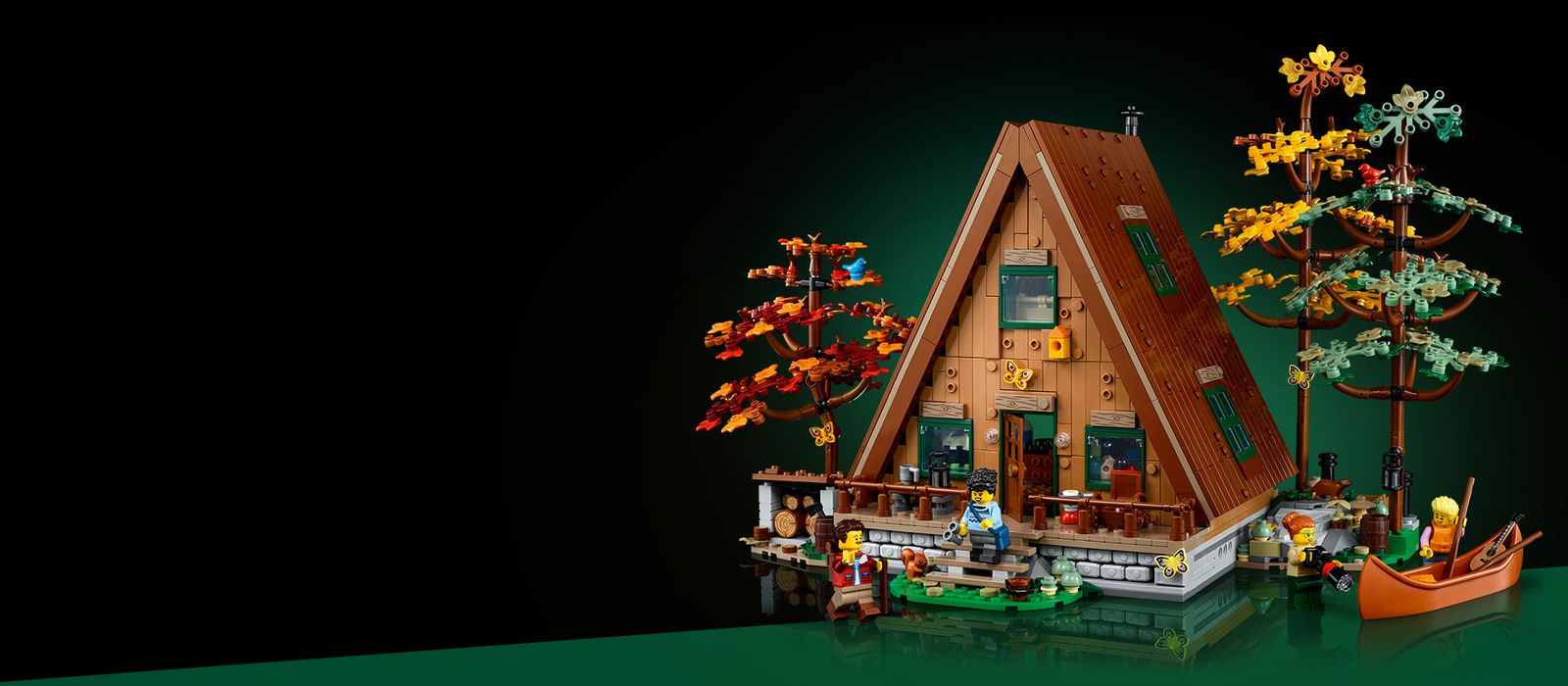 - LEGO® Ideas A-Frame Cabin (21338) display model – Escape the everyday and feel closer to nature as you build a detailed LEGO brick version of a classic A-Frame Cabin rural home