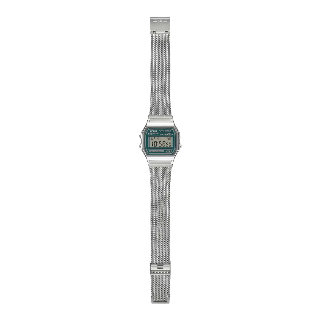 CASIO VINTAGE A158WEM-3 An updated take on a favorite classic — the ever-popular, easy-to-use A158 goes stylishly elegant with a fine-woven mesh band. Treated with a specialized pressing process that adds depth and dimension, the mesh band delivers a refined, vintage look and a totally comfortable fit for your wrist....