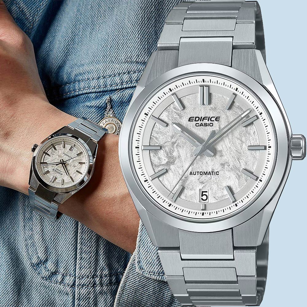 Crafted for true sports car enthusiasts and GT car fans — the EFK-100D, a sleek three-hand analog watch, embodies the EDIFICE spirit of synergy between timepiece engineering and the world of high-performance cars.