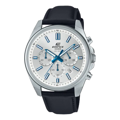 Strike just the right chord with a mid-sized classic EDIFICE chronograph. The sophisticated pairing of fine detail and design features a thin bezel offset by a wide dial for striking, elegant style.
