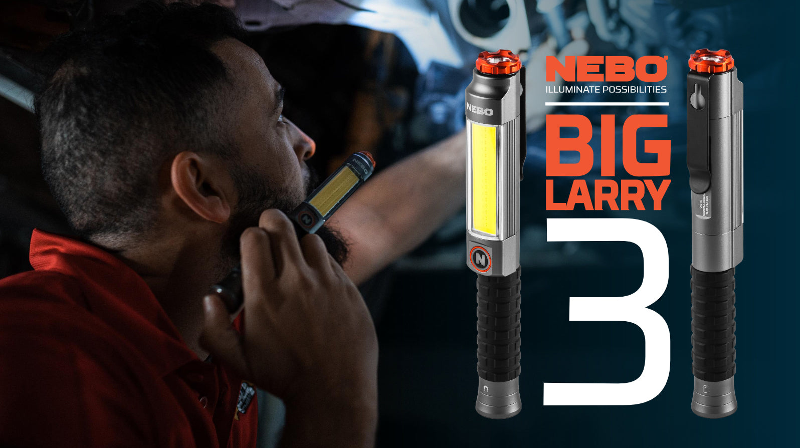 This third generation innovative work light and flashlight offer upgraded performance and the same reliability you’ve come to expect from BIG LARRY. Get more done with less tools thanks to the 7 light modes, 600 lumen work light, 220 lumen flashlight and 40 lumen red task light. With useful features like variable dimming, Direct-to-Red, Power Memory Recall, and a strong magnetic base you have a light that works for you and your unique lighting needs. The BIG LARRY 3 is designed to last, with an aircraft-grade aluminum construction and rubber grip provides impact-resistant drop protection. Carry it in a pocket or on a belt with the sturdy steel belt clip. When not in use, you can hang it on a wall with the integrated wall-mount hole or attach it to any metal surfaced with the powerful magnetic base. Battery powered with three AA batteries (included).