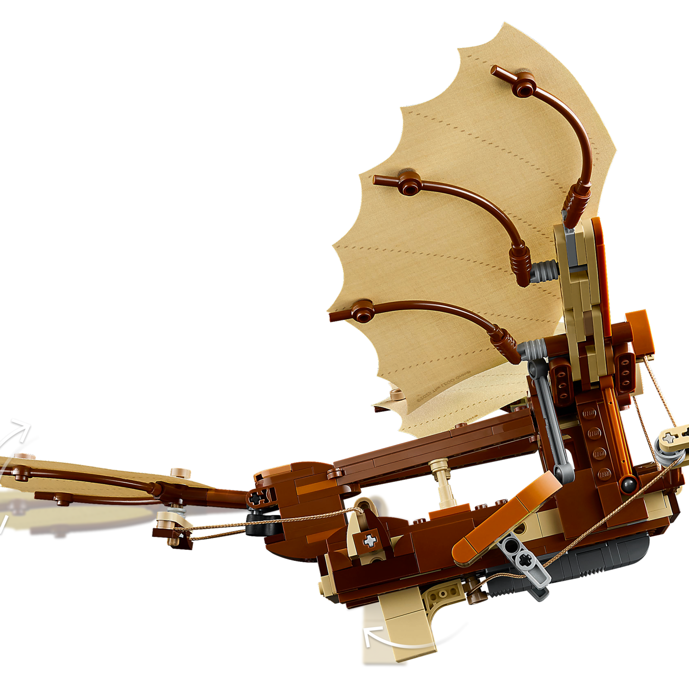 - What’s in the box – Everything you need to craft a detailed LEGO® interpretation of da Vinci’s visionary ornithopter, plus a display stand and a Leonardo da Vinci minifigure holding a quill and sketch