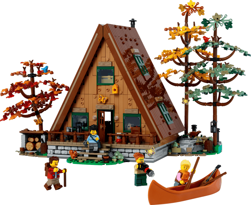 - LEGO® Ideas A-Frame Cabin (21338) display model – Escape the everyday and feel closer to nature as you build a detailed LEGO brick version of a classic A-Frame Cabin rural home