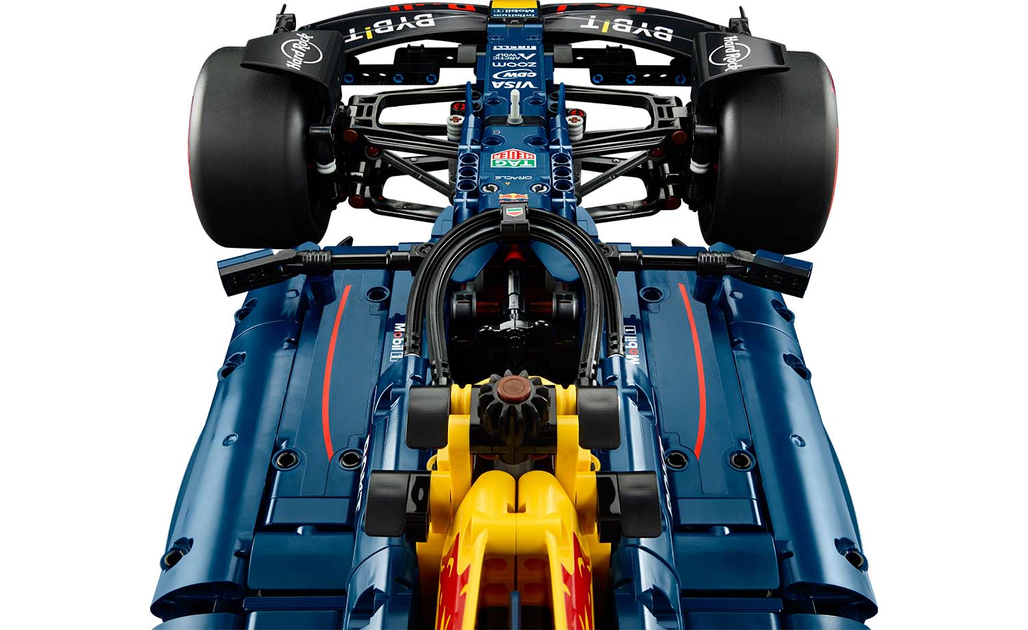 - An F1 racing car model packed with features – Celebrate your love for motorsports as you explore details including front and rear suspension, steering, an adjustable spoiler and printed tires