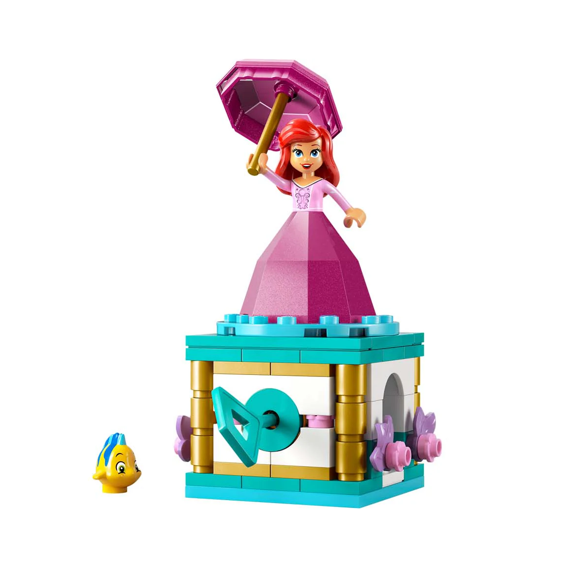 - Engaging building toy – Turn the key on the stand to spin the plate and twirl Ariel around, then store the LEGO® ǀ Disney mini-doll figure inside the ’diamond’ dress using the umbrella as a lid