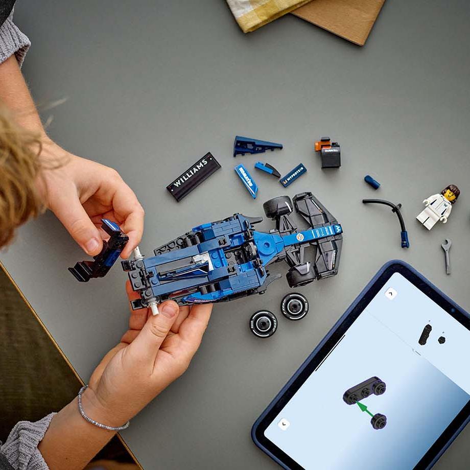 - 1 minifigure – The vehicle kit includes a driver minifigure wearing a Williams Racing outfit and a winged helmet for kids to place inside the cockpit and role-play thrilling race action