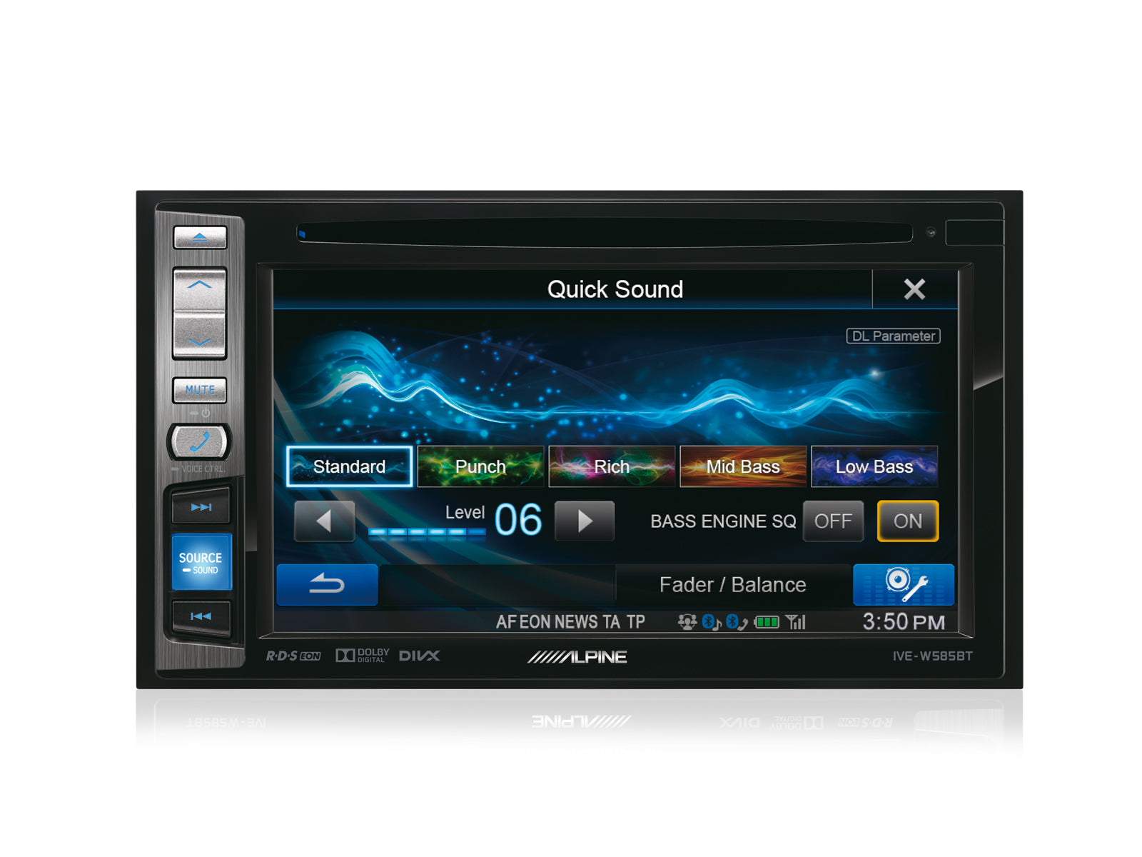 The IVE-W585BT puts the power of advanced sound processing in your car with BASS ENGINE SQ to maximise bass sound and overall tone balance, plus lots of custom tuning functions like Digital Time Correction and 9-Band Parametric EQ. Best of all, you can control them easily from your smartphone with the Alpine TuneIt App. 24-Bit DAC and 4-volt PreOuts, too!