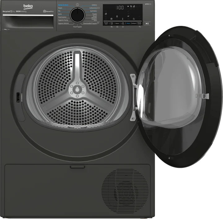B5T49233WM: Beko 9kg Heat Pump Dryer Twilight Grey AquaWave Wave-like drum action for gentler treatment Drying might take its toll on your clothes. So, here is AquaWave system’s curved door glass and specially designed paddles that move the laundry in a wave-like action inside the drum, treating clothes gentler and...