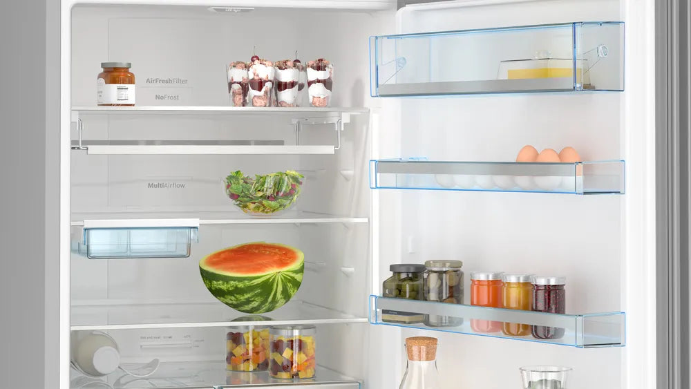 With the Super Cooling function, you can lower the temperature in your fridge for a short period before you go shopping. This ensures your fresh shopping is kept at the right temperature. Simply push a button to lower the temperature by 2°C at the lowest. And to prevent unnecessary power consumption, the function automatically switches back after approximately 6-15 hours. Plus, if your appliance is connected, you can set the Super Cooling function via the Home Connect App.