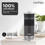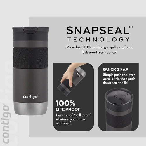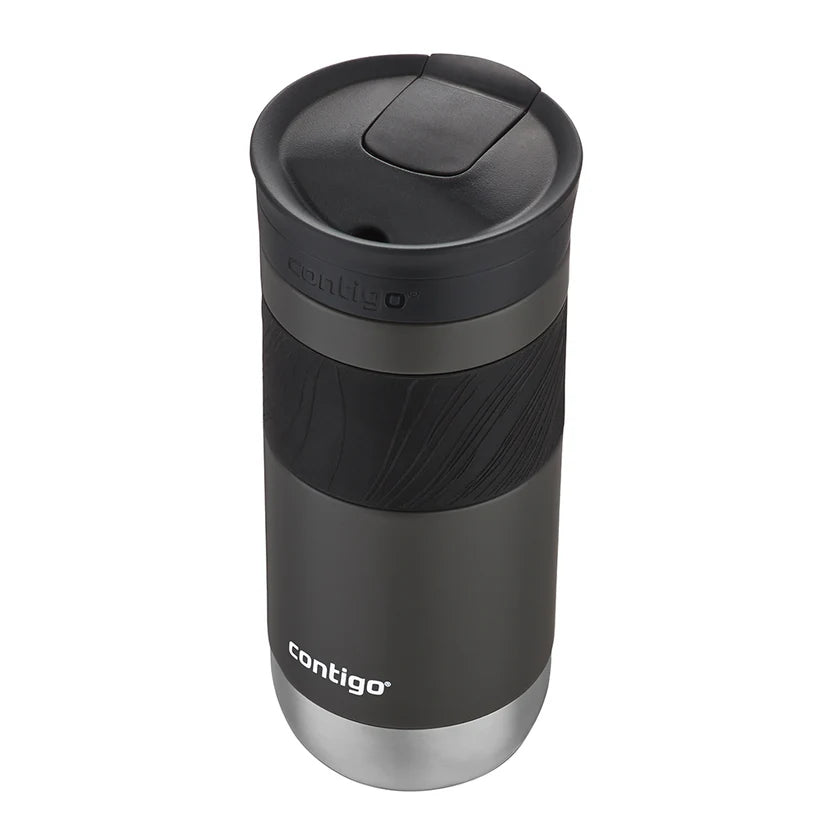 Taking beverages on-the-go is an important part of a busy lifestyle, but it can be frustrating when a travel mug leaks, leaving a stain on a favorite shirt or blouse. The SNAPSEAL™ Travel Mug gives confidence that stains won’t slow down the day. With a quick snap of the lid, the mug seals for 100% leak-proof performance. The Contigo SNAPSEAL™ Travel Mug is designed for an easy, one-handed drinking experience. Pop the top to drink (there’s no lid to unscrew or remove) and then snap it closed after sipping to seal the leak-proof lid. Tea or coffee stays hot for up to 6 hours or cold for up to 12 thanks to THERMALOCK™ vacuum insulation. This mug is designed to fit in most car cupholders and features a stylish grip to easily grab and go. This stainless-steel travel mug has a top rack dishwasher-safe lid and the body is hand-wash only.