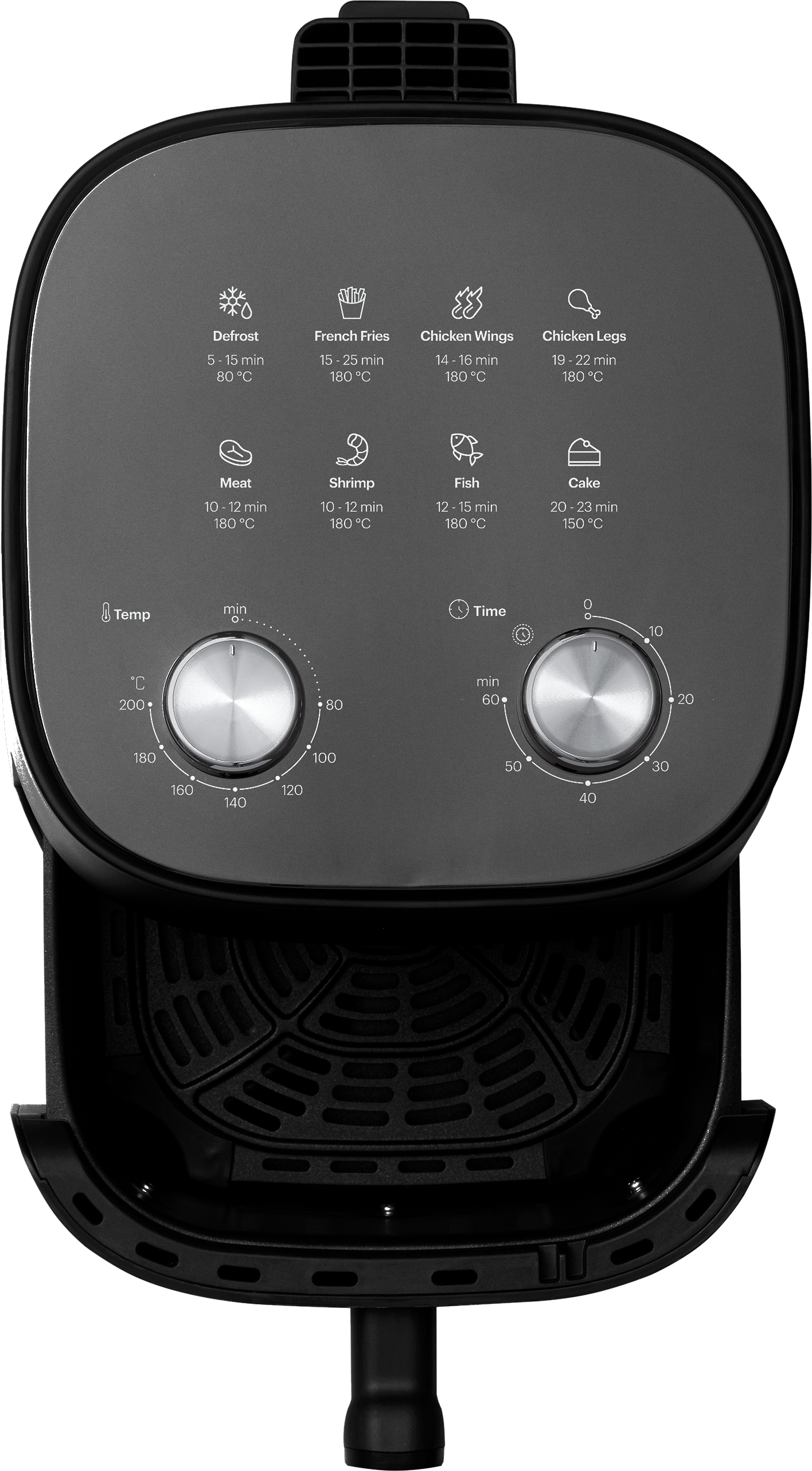 Black & Silver Design: Modern and stylish, this air fryer complements any kitchen decor.