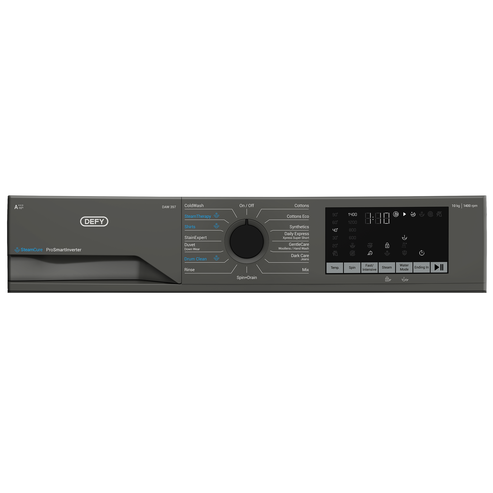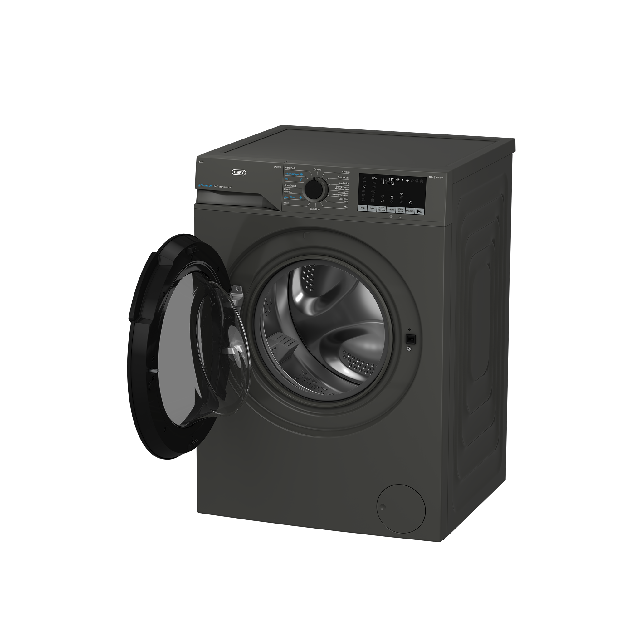 The Defy 10kg Front Loader SteamCure™ Washing Machine is the latest innovation in Defy’s front loaders. Defy’s SteamCure™ technology works to lift dirt for better cleaning and softens creases for easy ironing. SteamCure™ Technology assists in keeping clothes clean and sanitized while also being kind to your fabric.