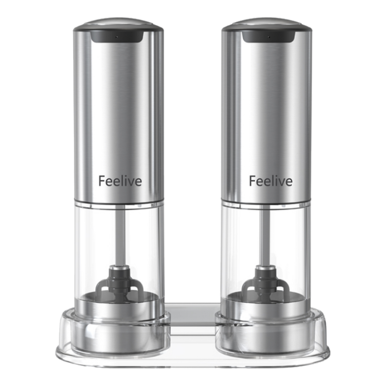 Upgrade your kitchen experience with the Feelive Rechargeable Pepper and Salt Grinder Set. This modern, one-touch electric grinder pair is designed for effortless seasoning, precision grinding, and elegant style — perfect for busy home cooks, BBQ enthusiasts, or professional chefs.