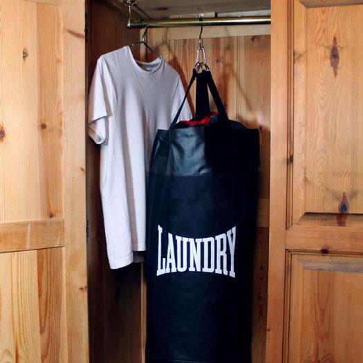 - - Laundry bag disguised as a classic boxing gym punch bag.