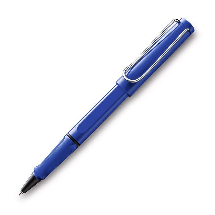 Rollerball pen for everyday use with ergonomic grip. Distinctive metal clip and resistant body made of matt ASA plastic. Including rollerball pen refill LAMY M 63 in size M in blue.