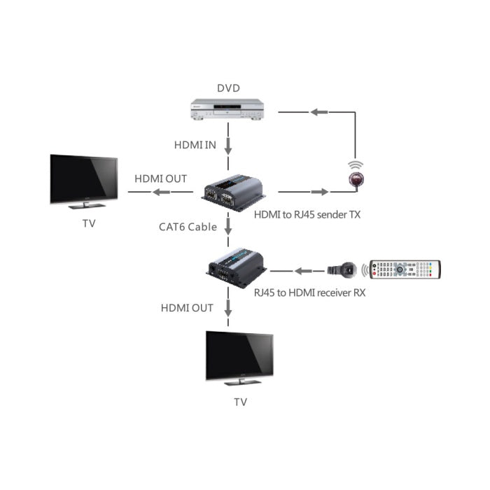 Lenkeng 60m HDMI Extender over CAT6 with HDMI Loop-Out and IR Pass-Through (LKV372PRO) FEATURES Supports resolutions up to 1080p Supports IR pass-back with 20~60KHz IR frequency function to control source device from receiver location Supports one HDMI output at the local unit SPECIFICATIONS HDMI Resolution: 480p / 576p / 720p...