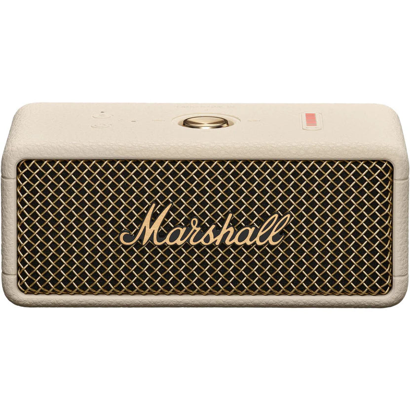 Experience portable audio with rugged, rock-and-roll style. The Emberton III delivers signature Marshall 360° True Stereophonic sound from a compact, durable design. With over 32 hours of playtime, a convenient quick-charge feature, and full IP67 dust- and waterproof protection, this speaker keeps the party going—rain or shine. Its Bluetooth 5.3 LE foundation paves the way for Auracast multi-speaker sharing (via future firmware), while the built-in mic lets you take calls easily. Wrapped in recycled-plastic material and free from PVC, it’s as kind to the planet as it is to your ears.