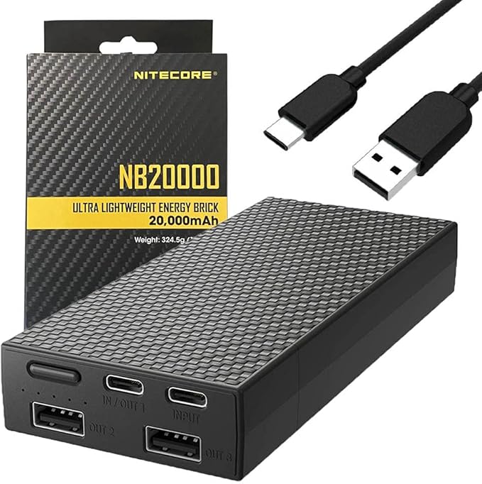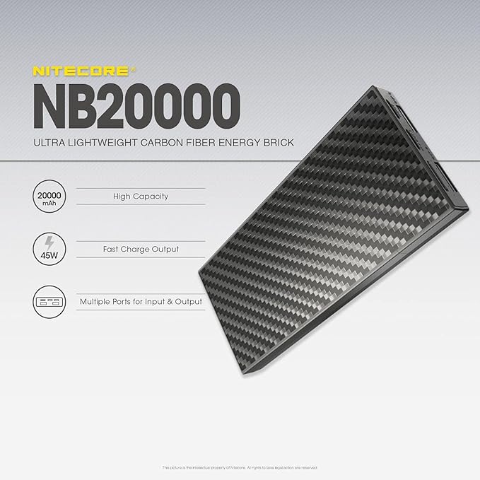 [ HIGH CAPACITY ] 20,000mAh 3.85V [ DURABLE ] Constructed with Carbon Fiber Polymer Hollowed Frame [ POWERFUL ] Can charge a smart phone up to 6.5 times [ TSA APPROVED ] In according to the UN38.3 Standard with a rated capacity less than 100Wh, the NB20000 can be your...