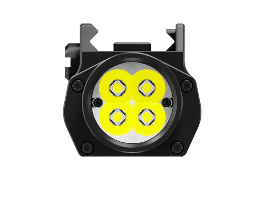 A high lumens wide angle pistol light with a simple straightforward and reliable interface. This light will switch on/off when the left or right button is tapped and also provides momentary on when the button is held. This can be done with support hand thumb or trigger finger for one handed operations.