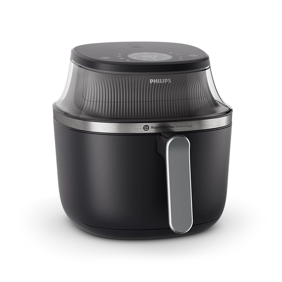 Enjoy delicious food with up to 90% less fat*. Patented RapidAir Plus Technology with unique star-shaped design circulates hot air around and through the food with faster airflow**, ensuring even cooking inside and outside to create tasty homemade meals.