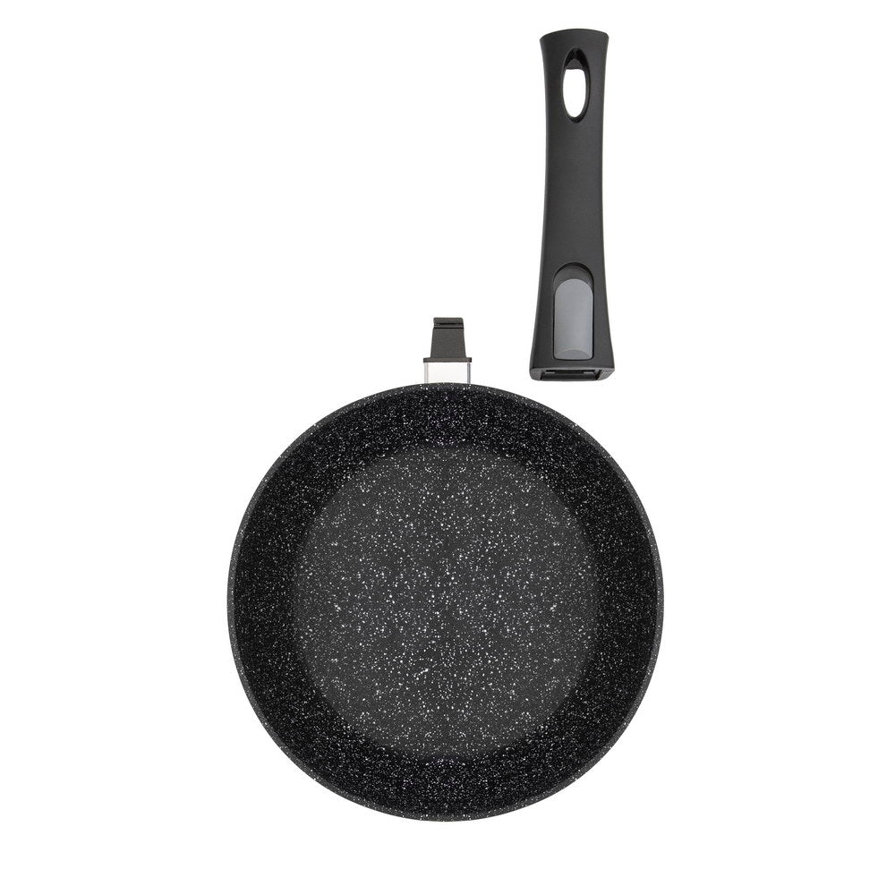 We at Resto have taken care of saving space in your kitchen. The Aries series frying pans are equipped with a removable handle, which makes it much easier to store the frying pan in the refrigerator or a small drawer. Detachable handles allow you to use the pan not only on the hob but also in the oven. Without a handle, the dimensions of the pan's body are significantly reduced, and it can be placed inside the oven without any problems. Also, without a removable handle, dishes can easily fit into a small dishwasher. And, as if this wasn't enough, a convenient hinge for hanging allows you to organize the workspace in your kitchen in the best way possible.