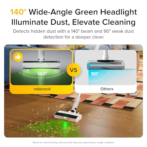 - Green LED Light for Hidden Dust: The 140° wide-angle green LED illuminates fine dust and hard-to-see dirt in dim areas like under furniture and along edges—ensuring a more thorough clean with the innovative cordless vacuum cleaner.