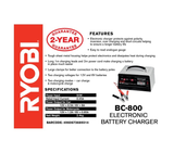 Ryobi BC-800 8A Auto Battery Charger – Reliable, Fast Charging for Cars & Motorcycles