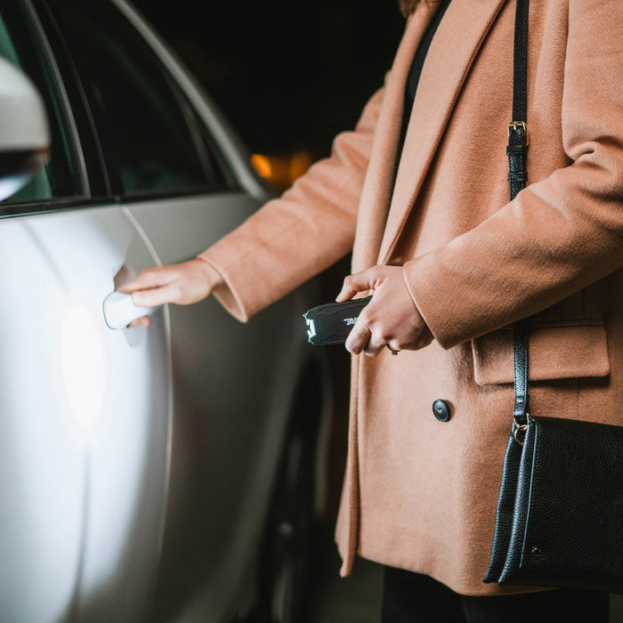 Take charge of your personal safety with the SABRE 2-in-1 Black Stun Gun with Flashlight and Battery Strength Indicator. This maximum strength stun gun delivers a 1.552 microcoulombs (µC) charge, helping to temporarily incapacitate an attacker by causing intolerable pain according to the Department of Justice (DOJ), allowing you to escape to safety. A built-in 120-lumen LED flashlight lights your way to safety in emergencies such as a power outage or use it for everyday tasks such as walking the dog at night. Unlike other stun guns, the S-1021 features a battery strength indicator so you know when you need to charge your stun gun, increasing its reliability. It also has a safety switch to help prevent accidental discharges while not in use. Easily carry your stun gun in the included belt holster for quick access to protection, or stash it in a purse or bag for protection while commuting or running errands. The SABRE S-1021 Stun Gun allows for multiple uses thanks to its built-in battery and included charging cable. Creating reliable personal protection products is important to SABRE, which is why we test the strength of our stun guns, ensuring you’re getting the best stun guns available.