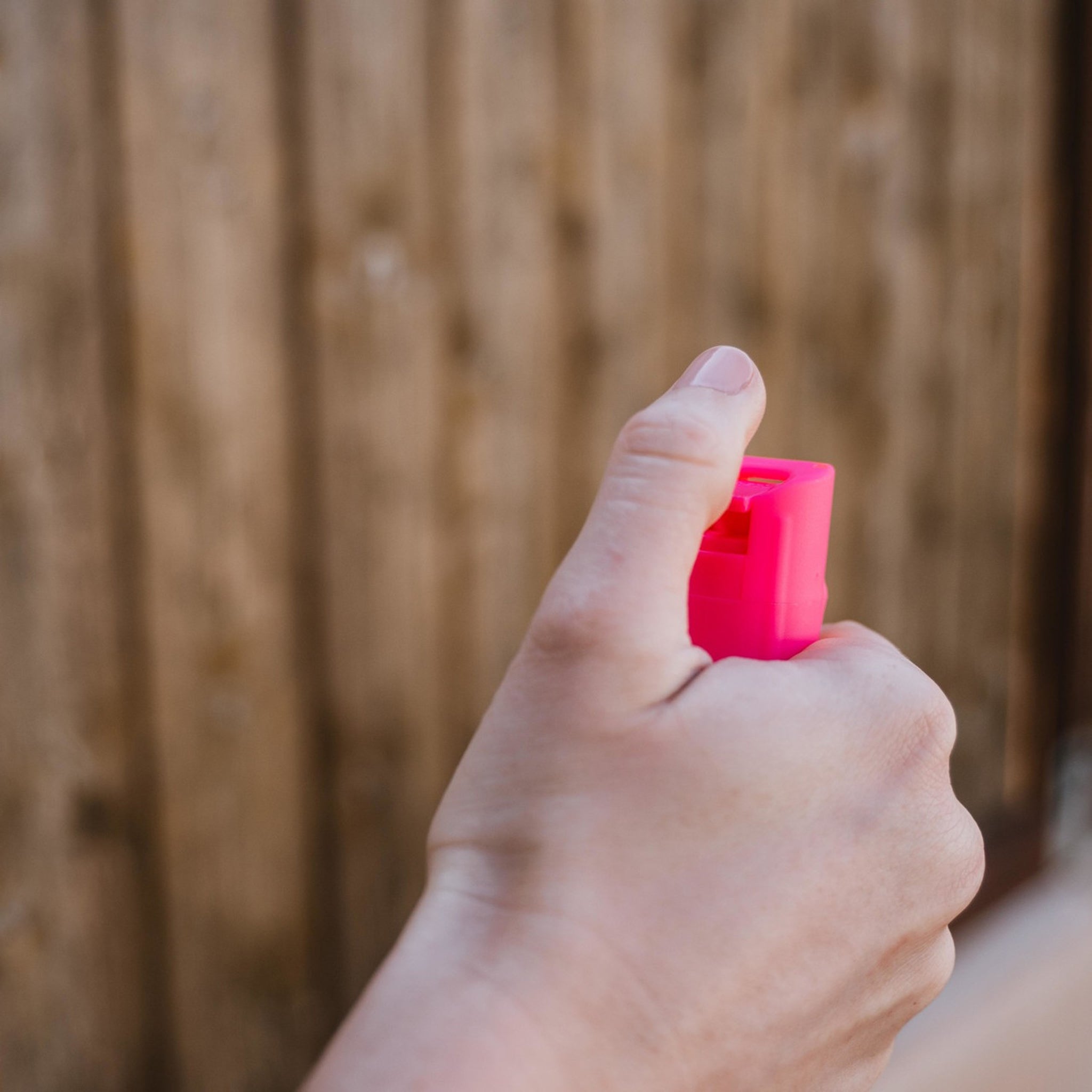 - Easily Accessible: Quick Release Key Ring provides access to spray when keys are in ignition or lock while the locking top safety helps prevent accidental discharge; finger grip enhances aim and product retention