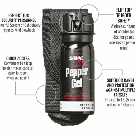 Experience unmatched safety and confidence with the Sabre Red Tactical Pepper Gel with Holster. This tactical pepper gel is designed for those who prioritize personal safety and demand the best in on-the-go security. Engineered with maximum strength formula, it provides superior protection against multiple threats thanks to its ability to spray a powerful stream of gel that minimizes wind blowback, allowing for precise defense capabilities at a safe distance. The Sabre Red Tactical Pepper Gel is not just effective but also highly practical. It includes a custom-fit belt holster that ensures the gel is always within reach, whether you’re commuting, running, or engaging in outdoor activities. The unique Crossfire technology allows the gel to be sprayed from any angle, providing optimal performance in varied situations. Its fast flip-top safety mechanism prevents accidental discharge and enables quick deployment, giving you critical seconds when they matter the most.