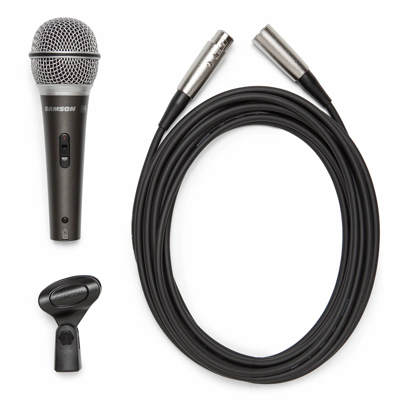 - Q6: Includes XLR cable, mic clip, and carry case