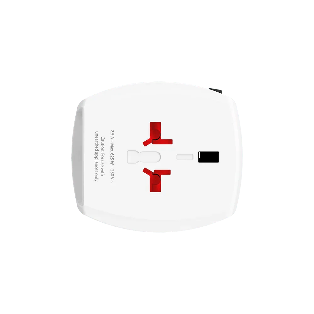 Universal travel adapter—compatible with unearthed 2‑pin plugs