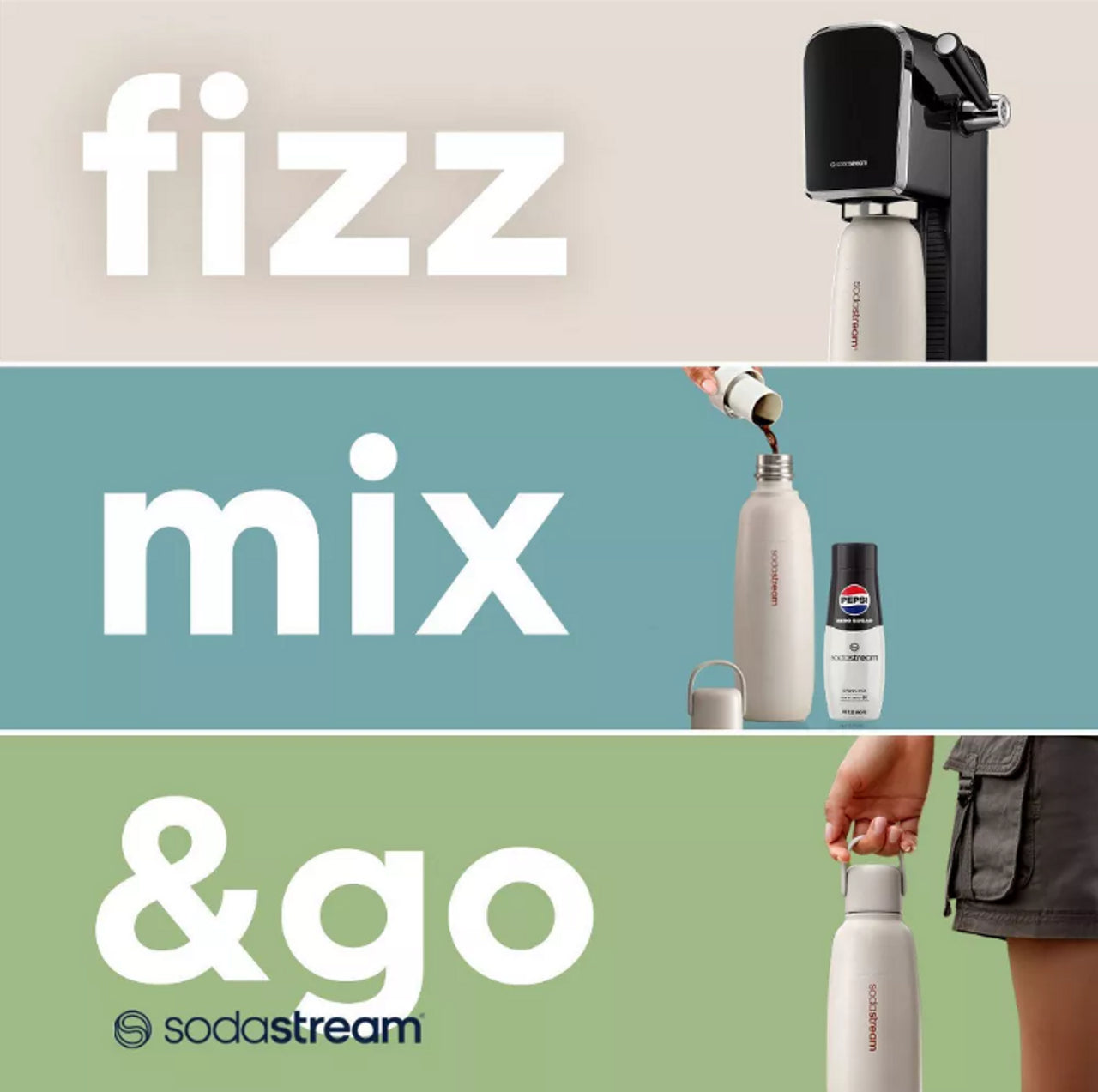Fizz & Go Bottle - Cool Sand The new SodaStream Fizz & Go COOL bottle is perfect for enjoying your favourite fizzy beverages at home or on the go. Constructed with double wall stainless steel, it will keep your beverage cold and bubbly for up to 12 hours. Designed to...